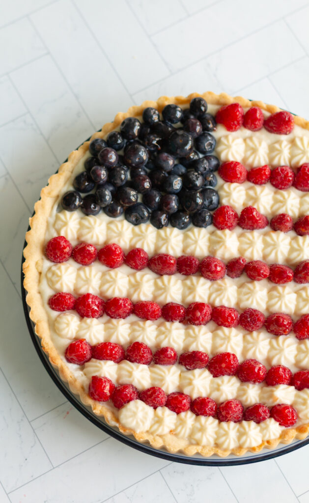 This flag tart is perfect for gatherings when you want to go all out with the holiday. Since all of the components are homemade too, it’ll impress everyone and taste so much better than store bought!