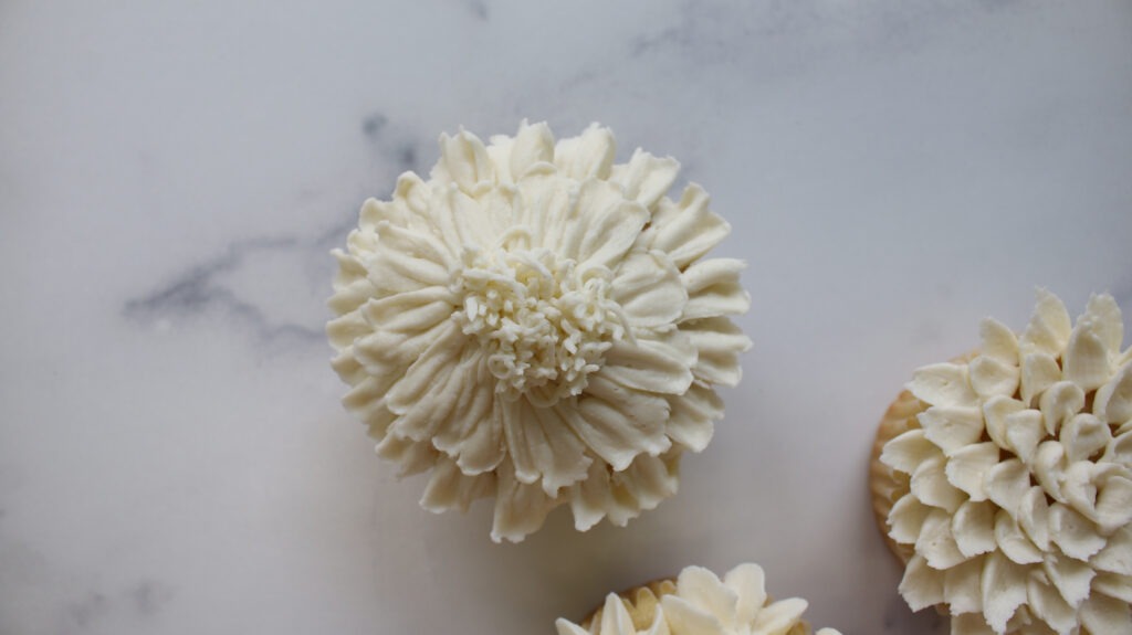 Create the same two motions by piping petals all around the edge of the cupcake.