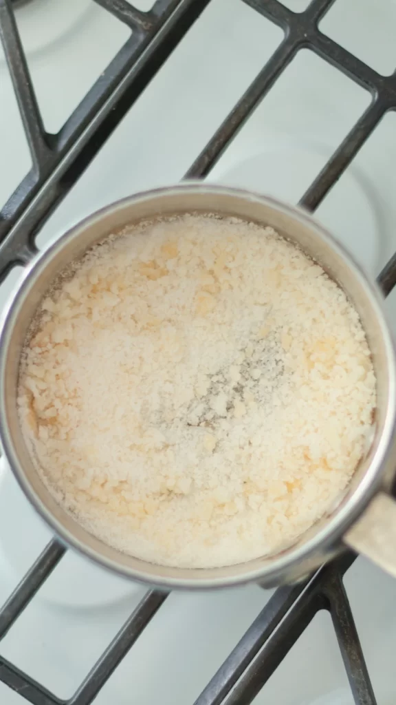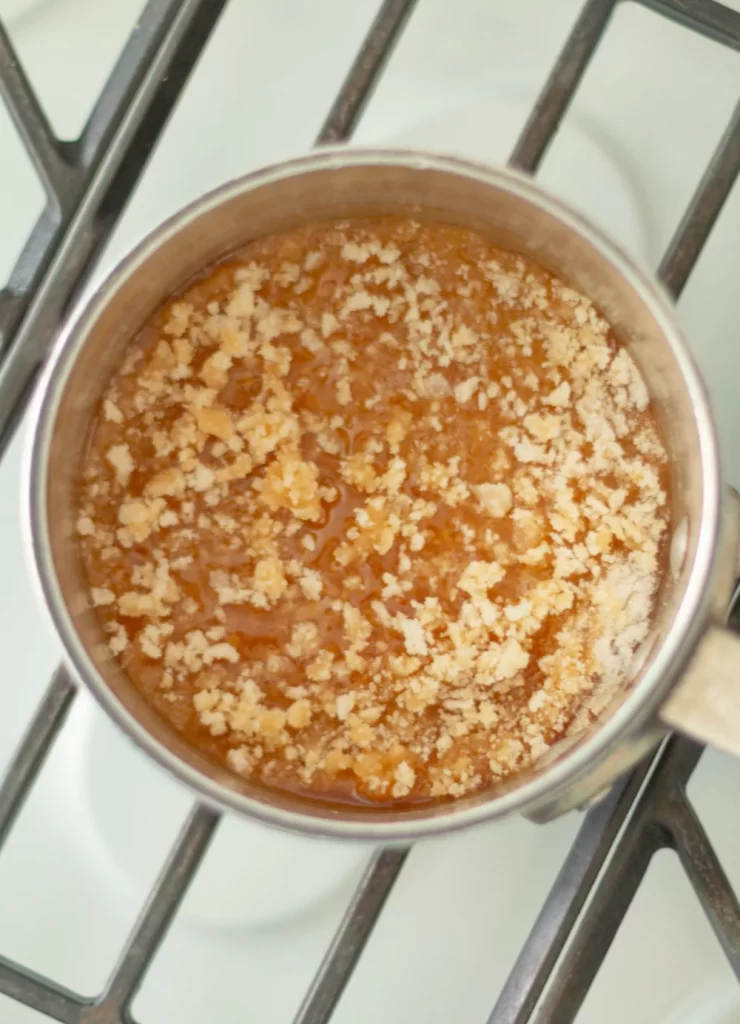 • In a medium to large heavy-bottom saucepan, add the sugar and turn the heat to medium-low. Gently stir and watch for the sugar to start forming clumps (this can take 3-5 minutes). As you see larger clumps form, start stirring constantly to help break down the clumps.