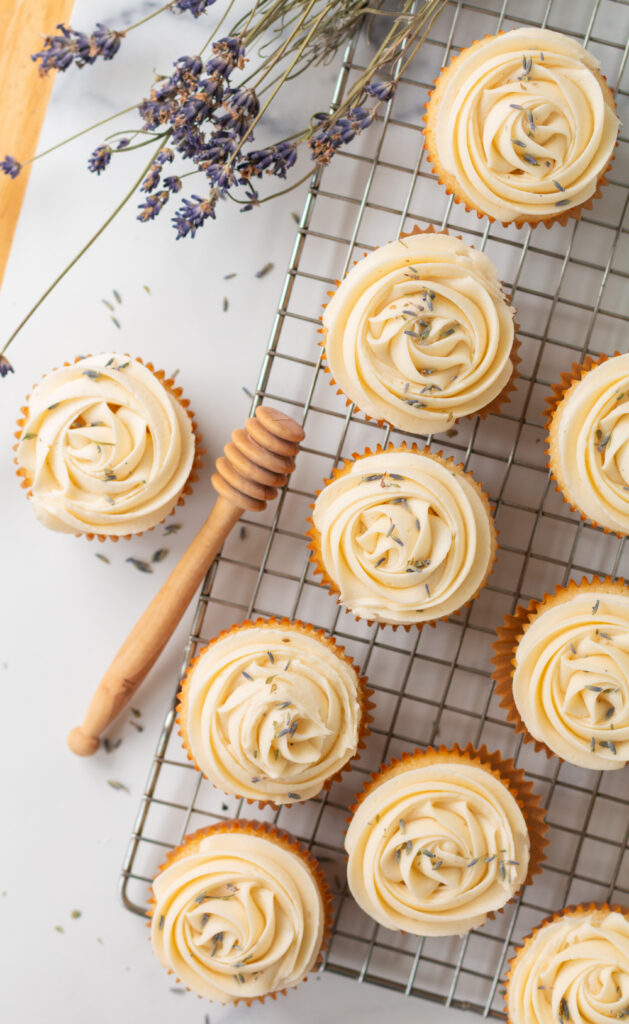 Lavender cupcakes with honey buttercream are deliciously fragrant, soft, and fluffy! These cupcakes are the perfect sweet addition to a tea party, baby shower, wedding, celebration, or just because!