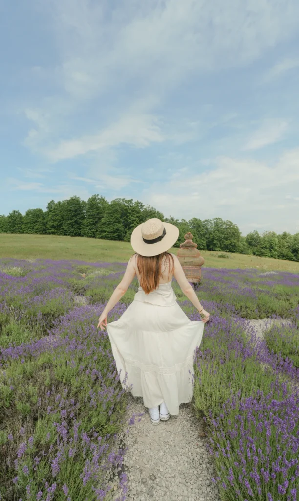 - Wear something flowy and light to compliment the feeling of frolicking in a lavender field (but also to stay cool because it’s hot).