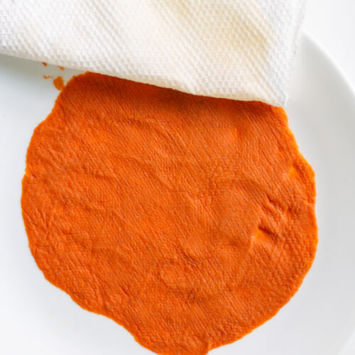 You want to blot until the pumpkin puree is dry to the touch (this could take multiple paper towels!).