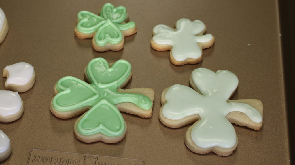 For St. Patrick’s day this year, I decided to decorate a sugar cookie set with fun themed shapes and a few new decorating techniques.