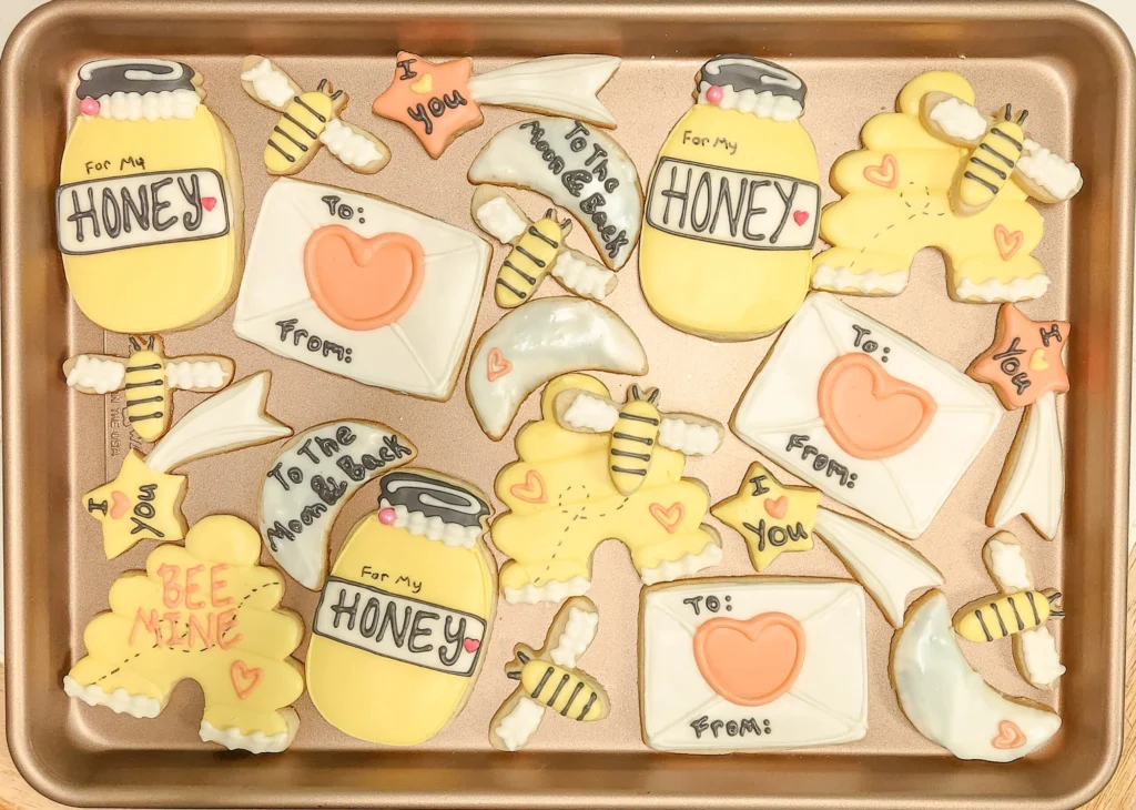 Cookie cutters: Mason Jar, Love Mail, Bee, Beehive, Shooting Star, and a Moon