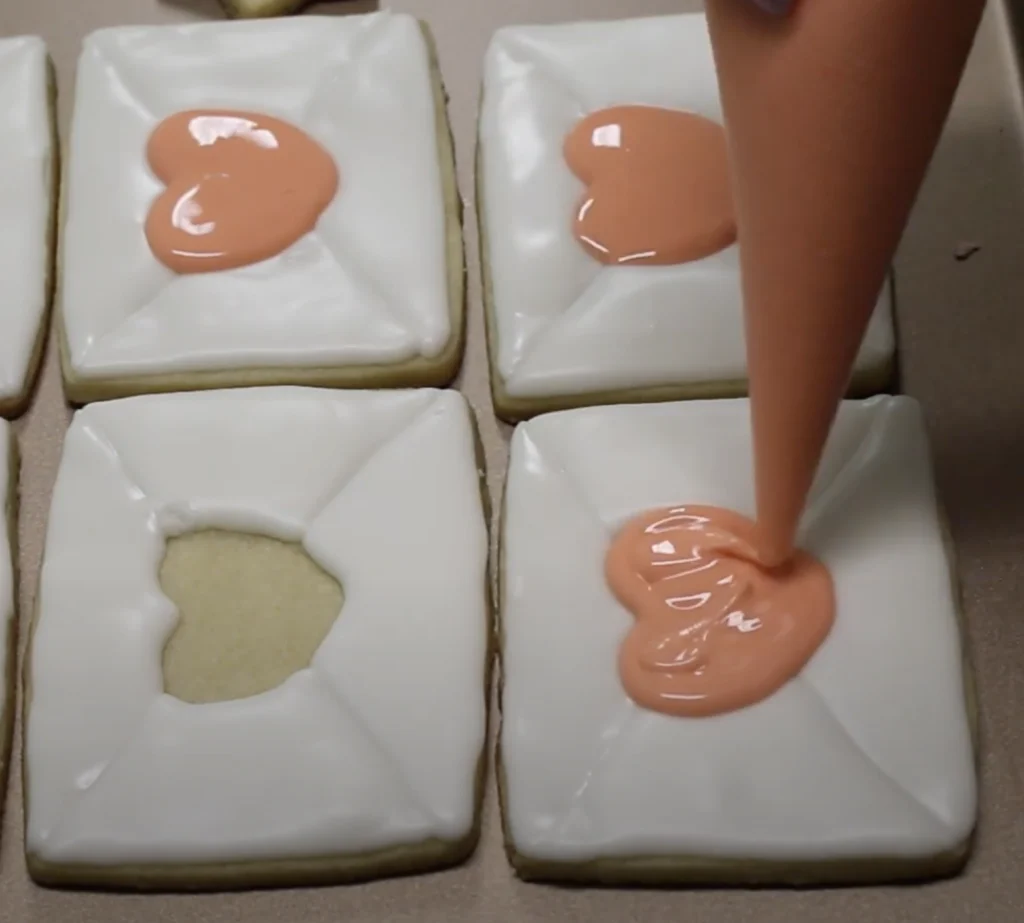 - Pipe the top of the envelope and let it dry before adding hearts.