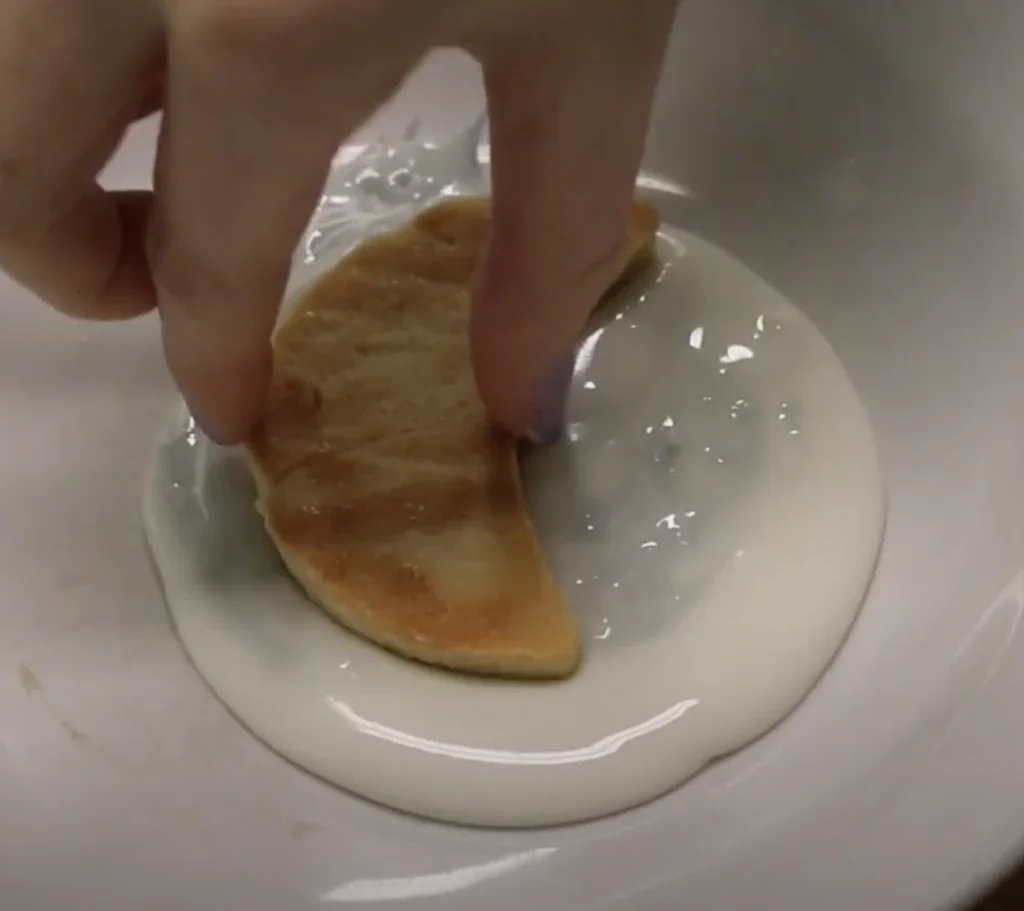- Dip a moon cookie straight down into the bowl and gently pull up. Let the extra icing fall off. You can shake the cookie to flatten the icing. Set on a wire drying rack to crust over (about 5 minutes).